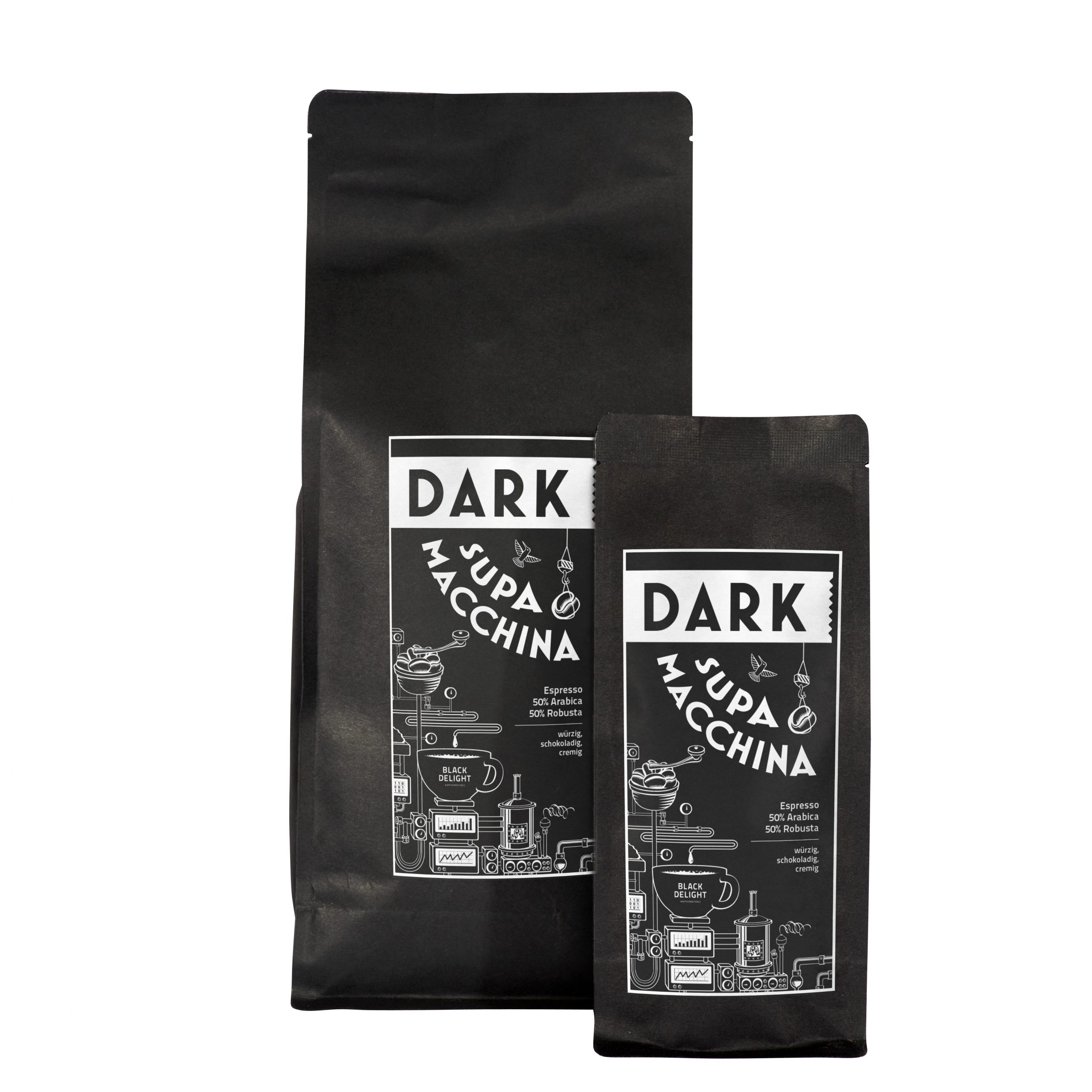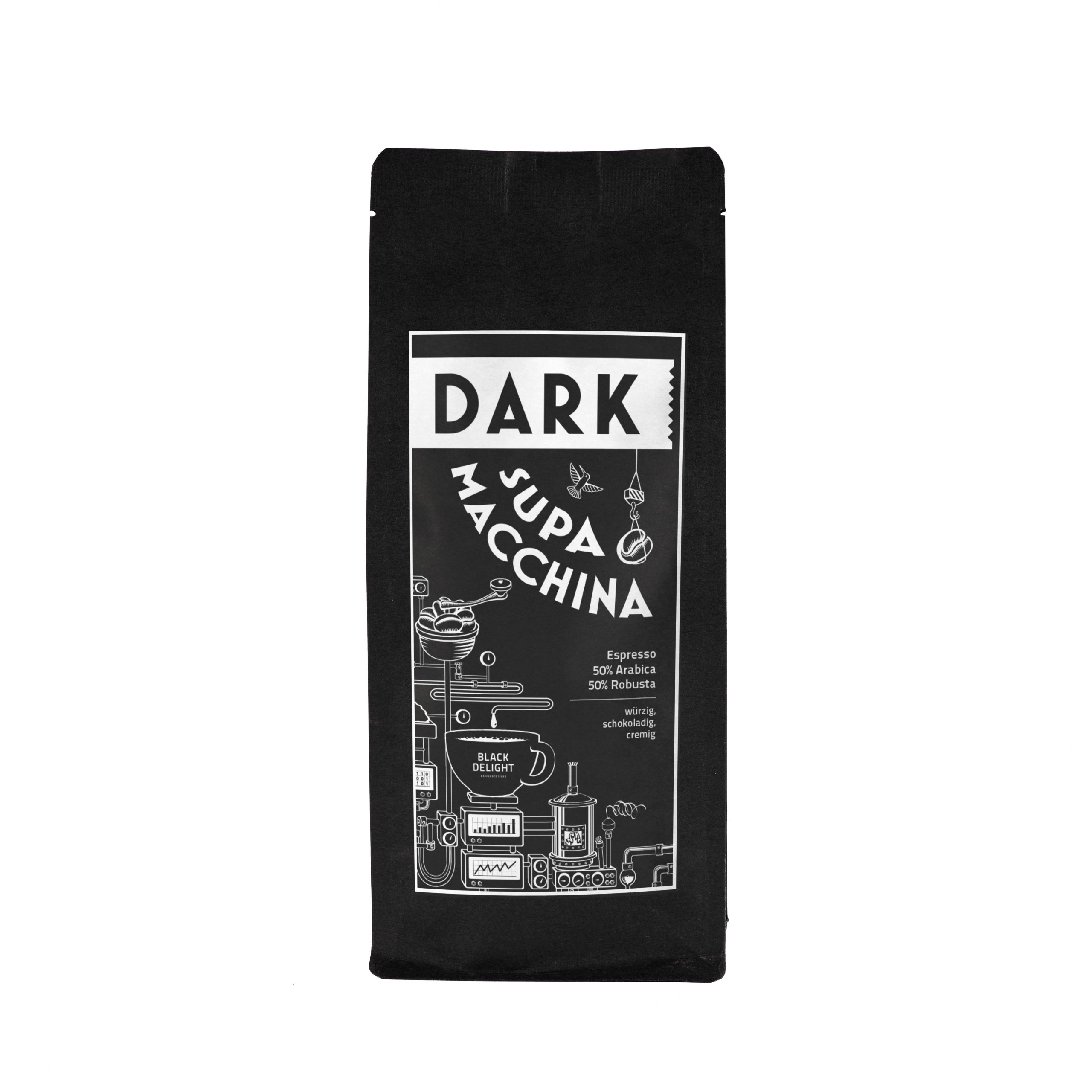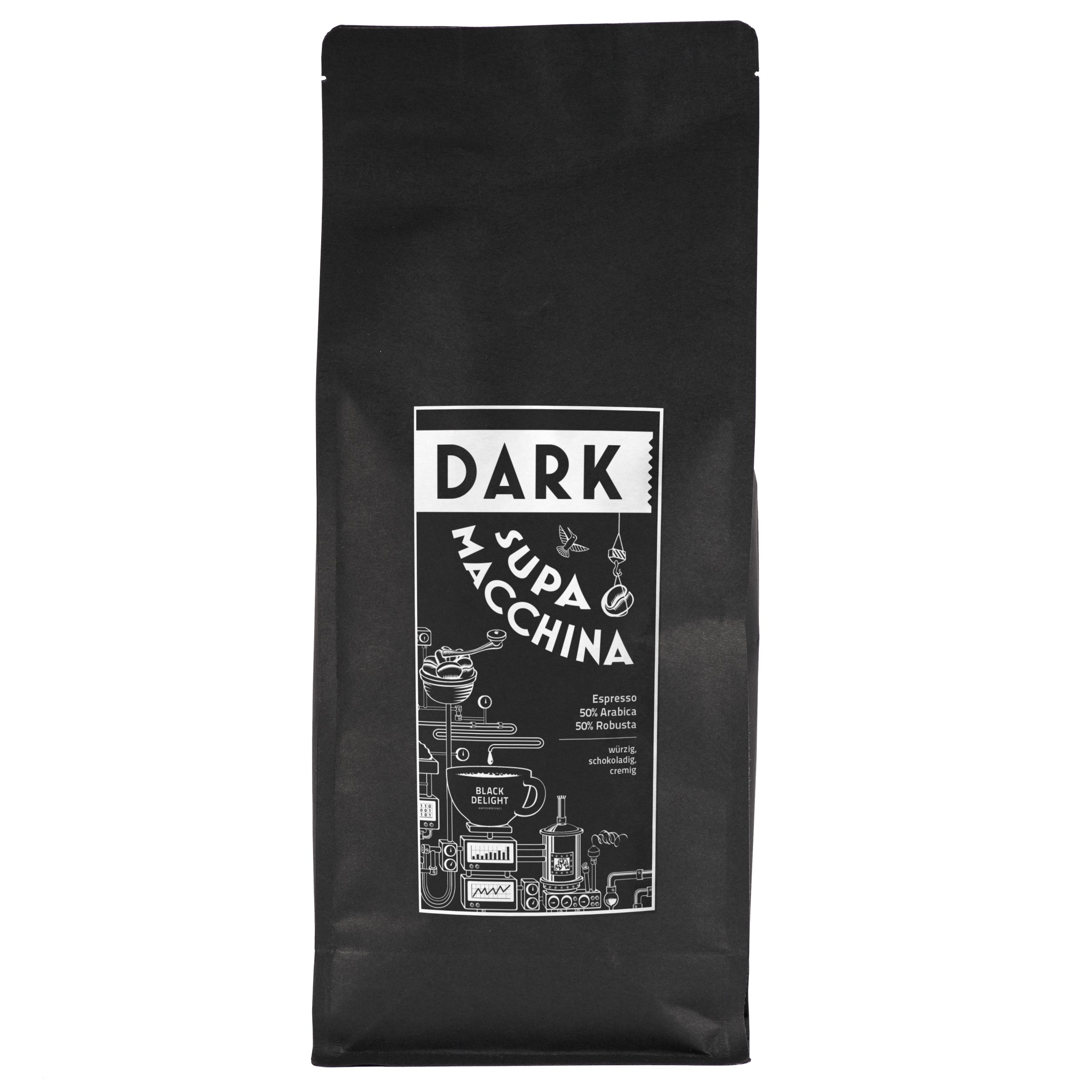 Der Supa Macchina Dark ist unser neuer Blend für Vollautomaten, abgestimmt für Liebhaber von einem kräftigen, vollmundigen Espresso mit klassisch schokoladigen Aromen.